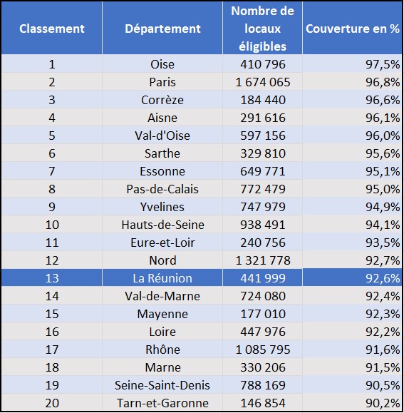 La Réunion conserve sa deuxième place des régions de France les mieux fibrées, et se trouve désormais à 1 point seulement de la région Ile de France placée en haut du podium.