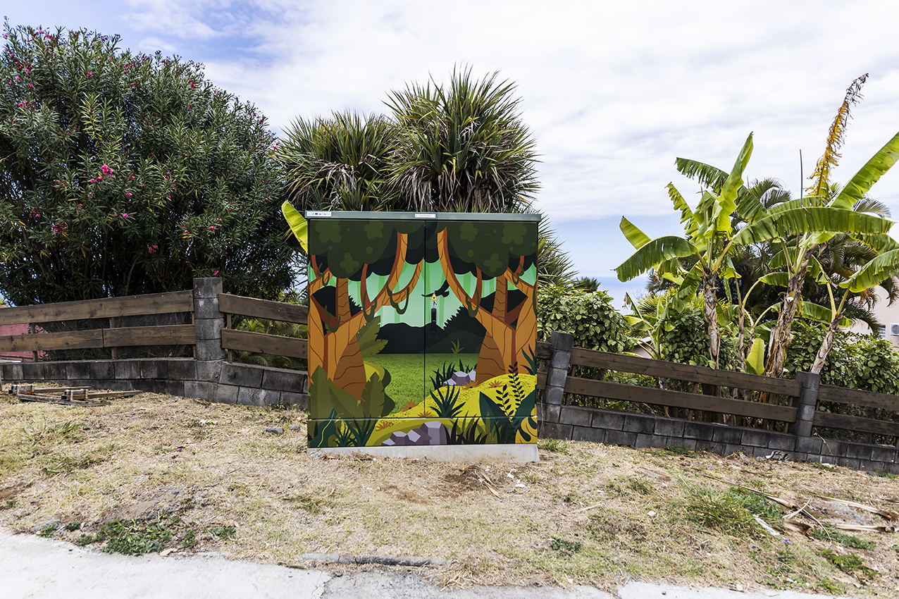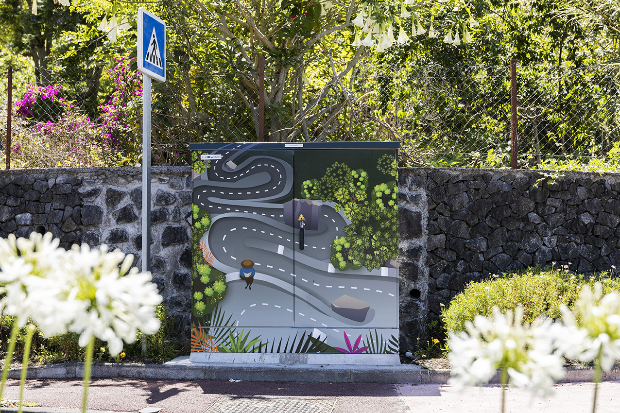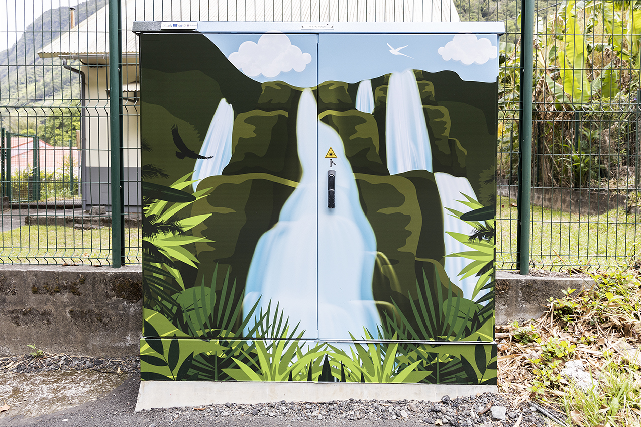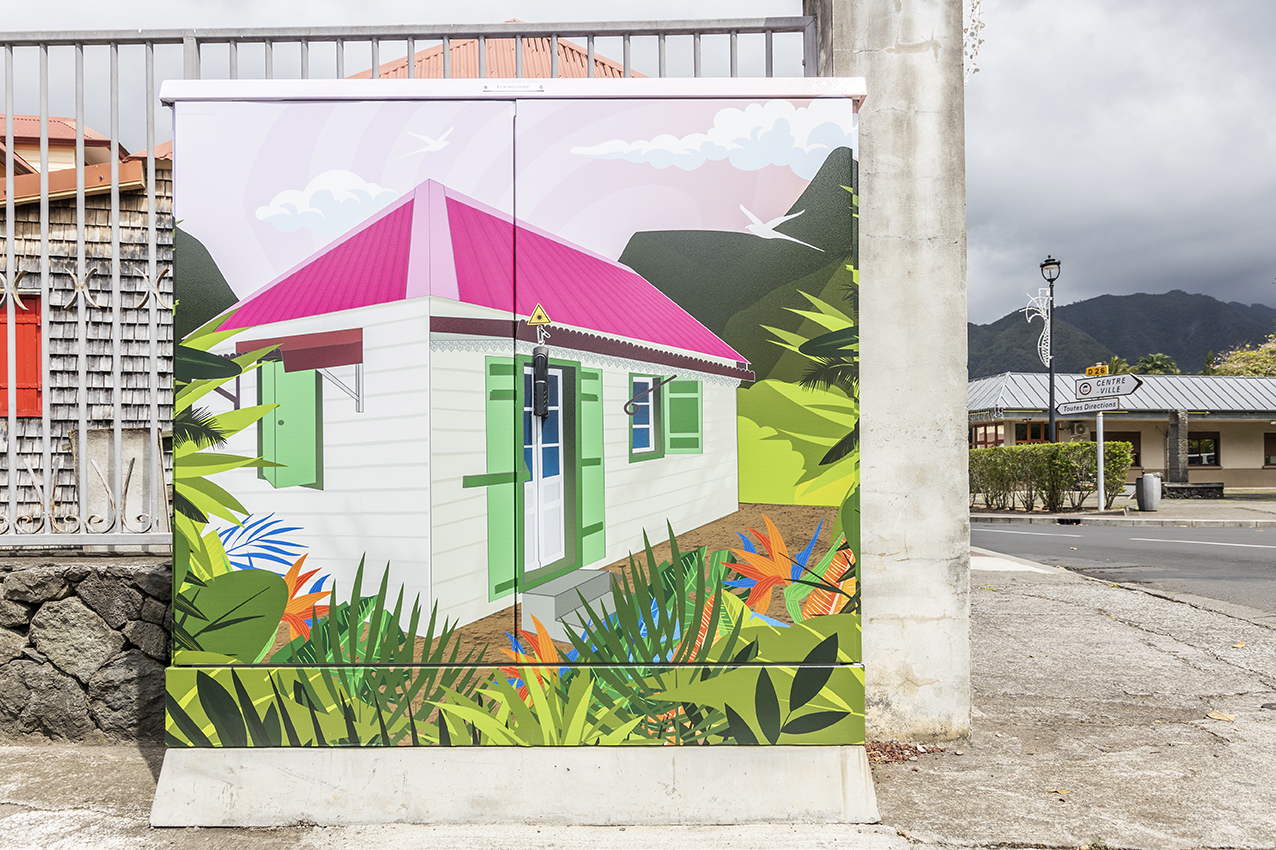 Nous avons conçu des habillages graphiques représentant votre commune ou votre environnement le plus proche. Ainsi vous pourrez découvrir une magnifique case créole à l’Entre Deux, retrouver la fabuleuse cascade du voile de la mariée au cœur d’ HellBourg, le Cap Méchant sur la route du Tremblet, ou encore l’Eglise Notre Dame des Laves à Sainte Rose. La forêt des Makes s’invite aux Avirons pour le plus grand plaisir des résidents du quartier et des lycéens. Dénichez la route aux 400 virages qui s’est cachée à Bras Sec.
